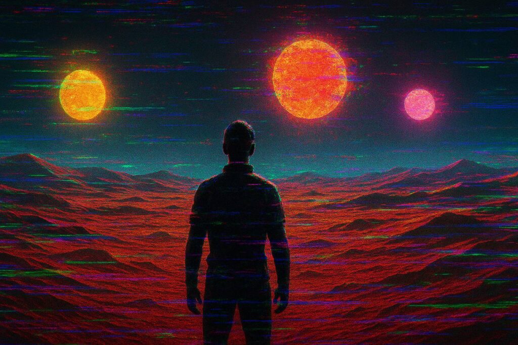Budget produksi Netflix yang besar terasa di setiap frame. Desain visual permainan VR “Three-Body” sendiri adalah karya seni yang disturbing. Dunia dengan tiga matahari yang naik turun secara tak terduga menciptakan atmosfer mencekam yang tidak bisa dilupakan.